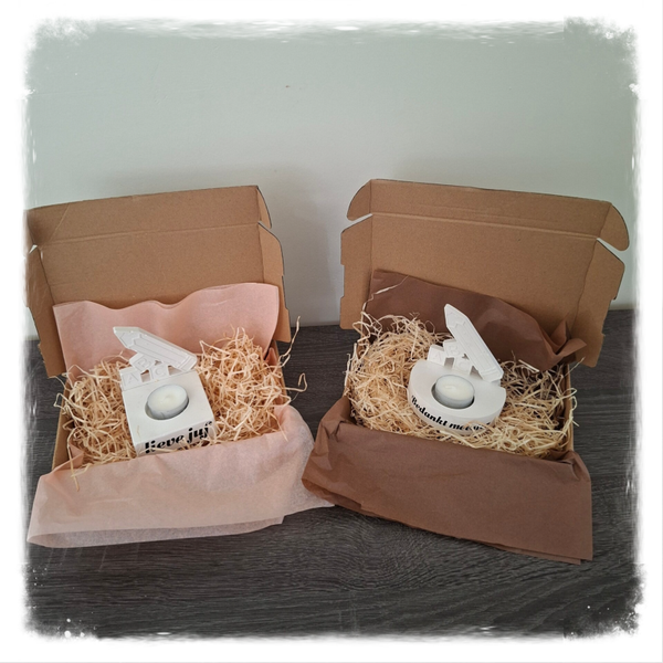 De beeldjes zijn verkrijgbaar in verschillende kleuren en er is een keuze met of zonder waxinelichtje.
