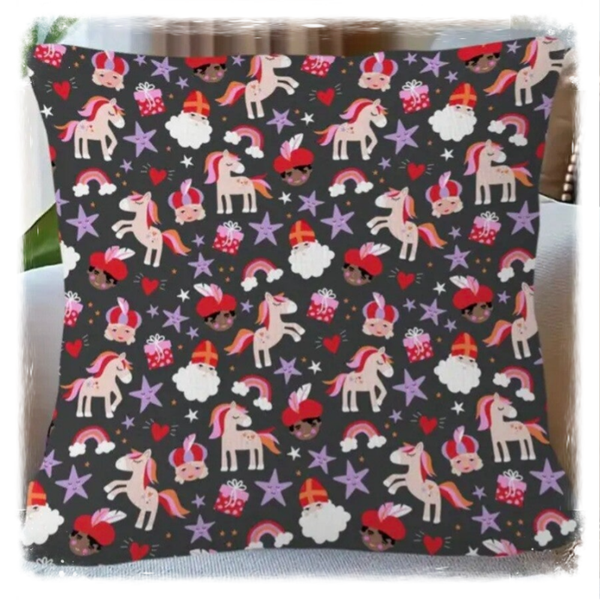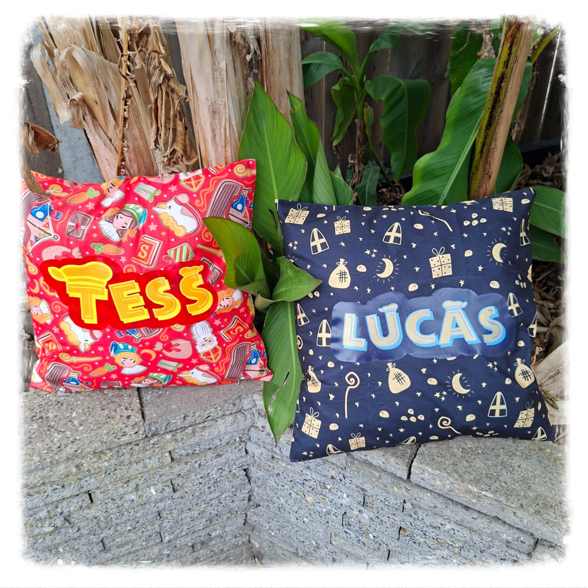 De kussens zijn zowel te verkrijgen met of zonder opvulling en met of zonder naam. Deze leuke kussentjes zijn leuk om weg te zetten als decoratie tijdens de Sinterklaas tijd.