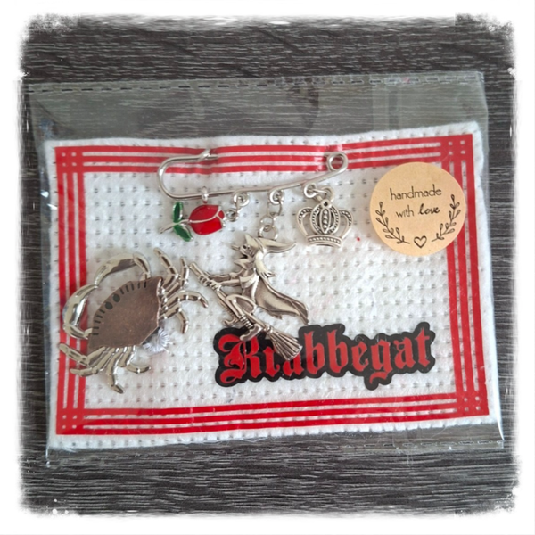 Deze super leuke minidweiltjes zijn leuk om aan je bontjas, boerenkiel, gordijntje of hoedje te hangen tijdens de vastenavend. De dweiltjes bevatten de tekst krabbegat en een speldje met 3 bedeltjes eraan die met de vastenavend te maken hebben en een krab.
