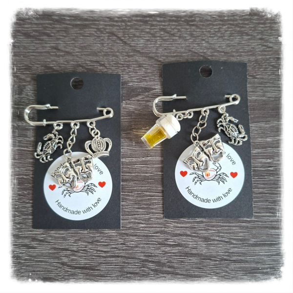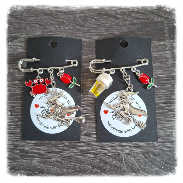 Deze super leuke speldjes zijn leuk om aan je bontjas, boerenkiel, gordijntje of hoedje te hangen tijdens de vastenavend. De speldje bevatten 3 bedeltjes in het thema van de vastenavend
